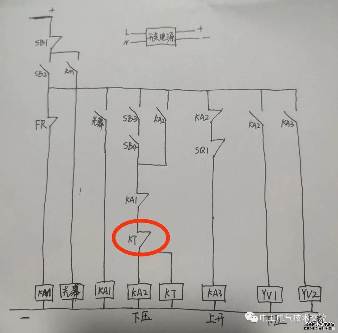 按下啟動按鈕SB2,油泵工作后立即按下雙手按鈕油壓機下壓,松手后,液壓機正常。文章由電工小知識分享電友編著,版權(quán)歸原作者,向電友致敬!